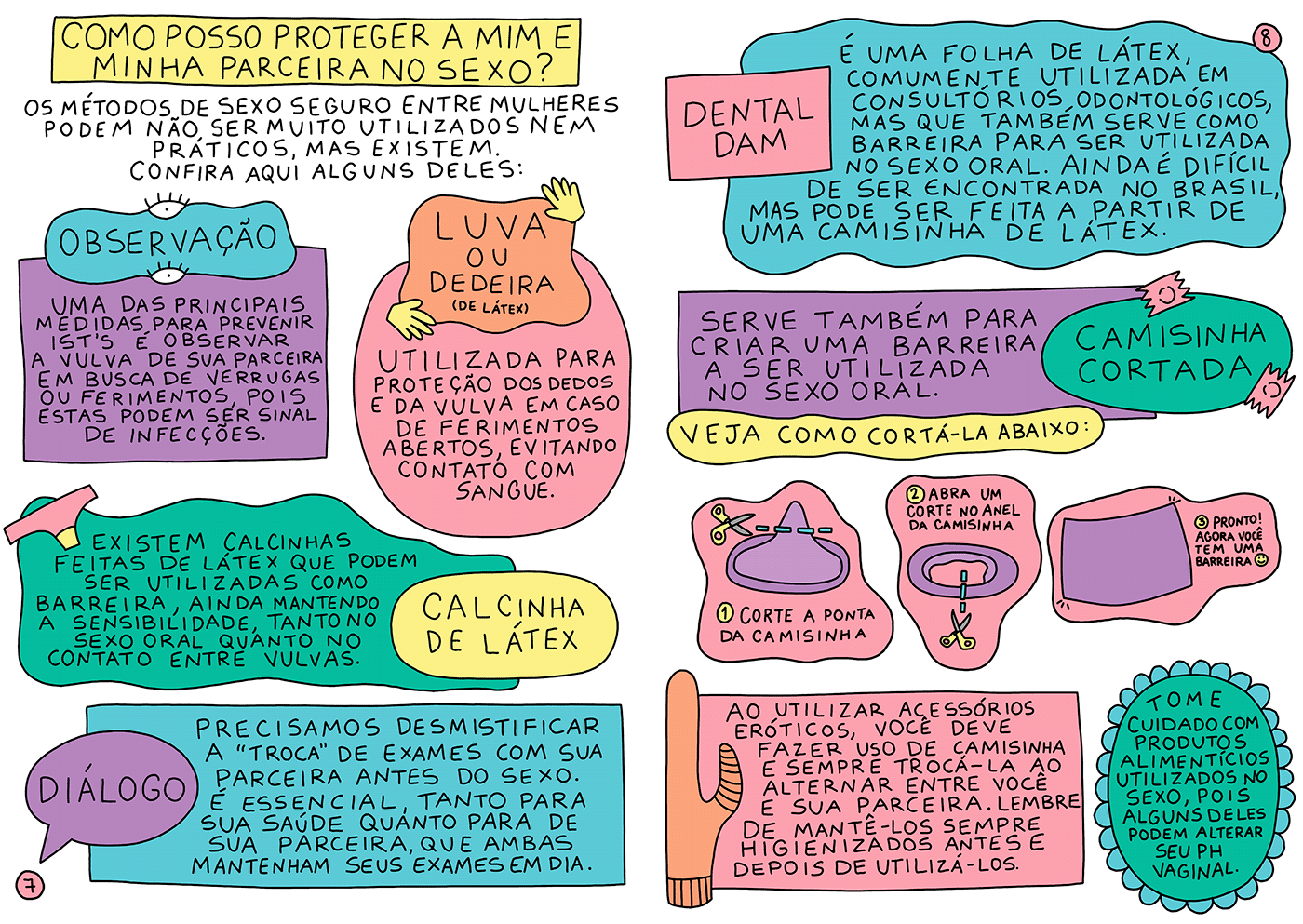 Aqui você pode conferir na íntegra a cartilha Velcro Seguro e também pode acessar o link para baixar você mesma. O guia foi desenvolvido para suprir a falta de informação sobre sexo seguro entre mulheres com vulva, diante de um contexto que não dá a devida atenção aos cuidados de saúde dessas mulheres.